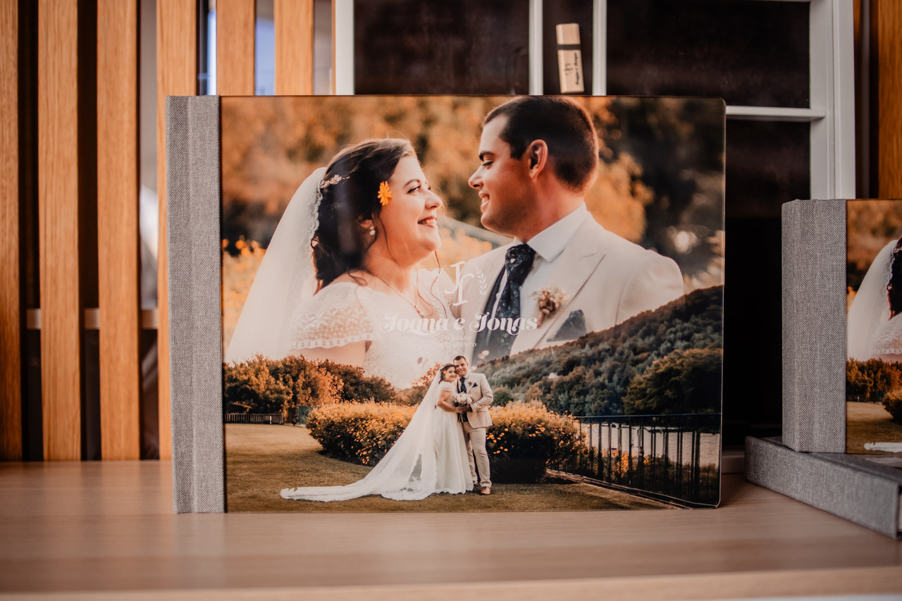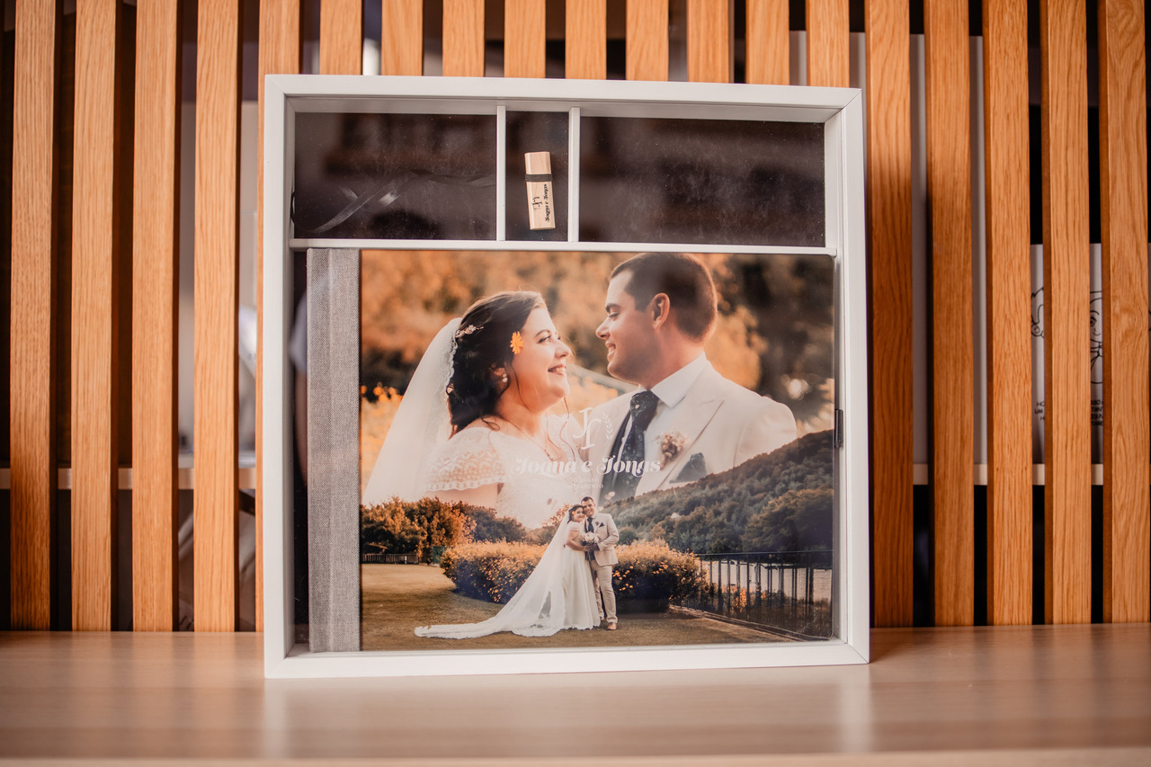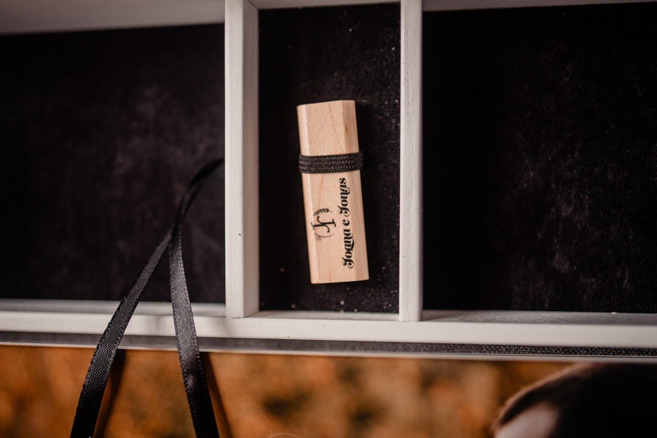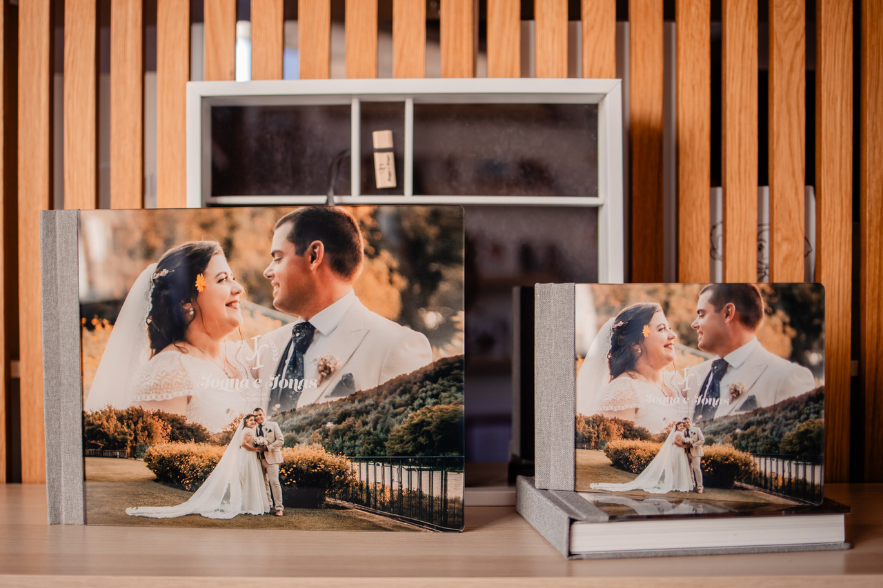 Conjunto de casamento composto por caixa, álbum e duas réplicas.