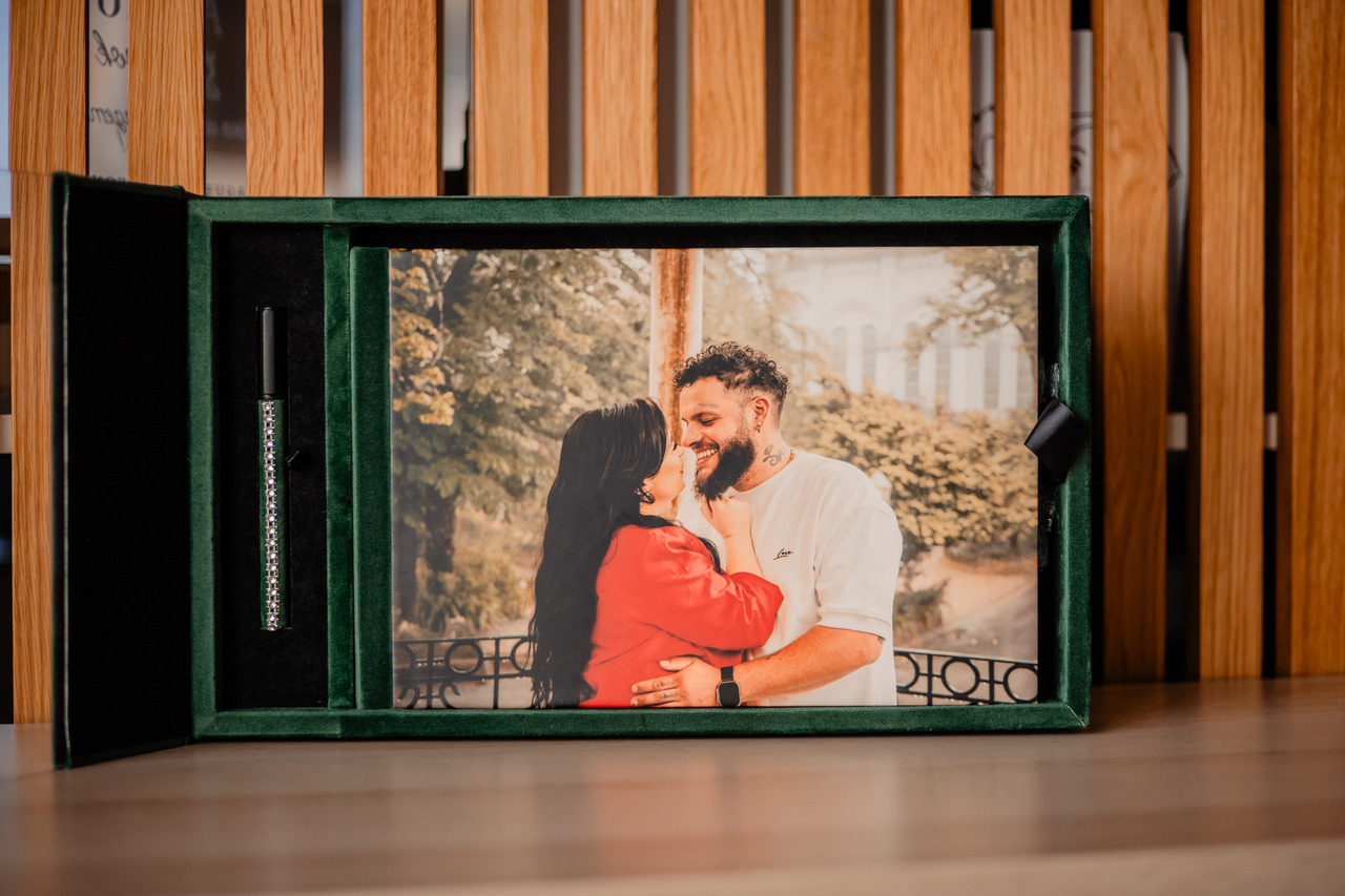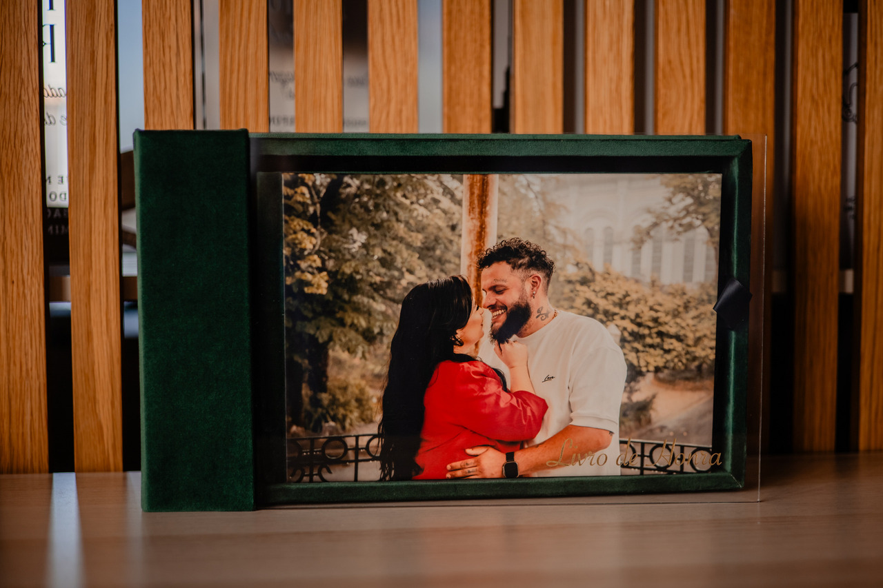 Conjunto de Livro de Honra fotográfico para casamento.