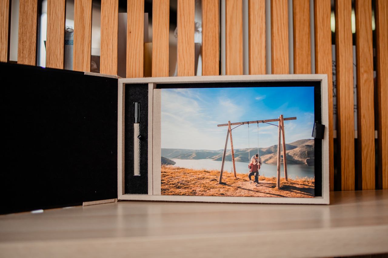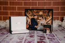 Conjunto de livro de honra fotográfico para casamento.