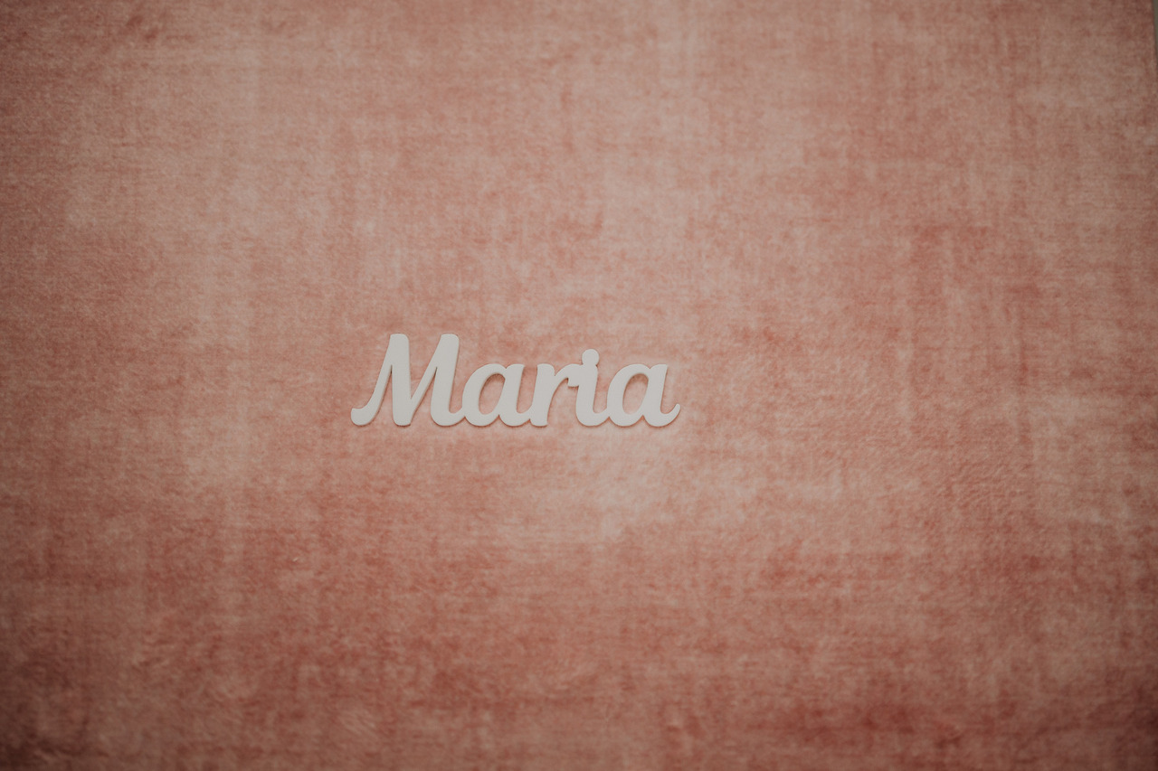 Caixa expositora com gravação em acrílico recortado branco. Revestido a veludo de cor rosa e madeira branca. Interior a veludo bege e fita branca a fechar.