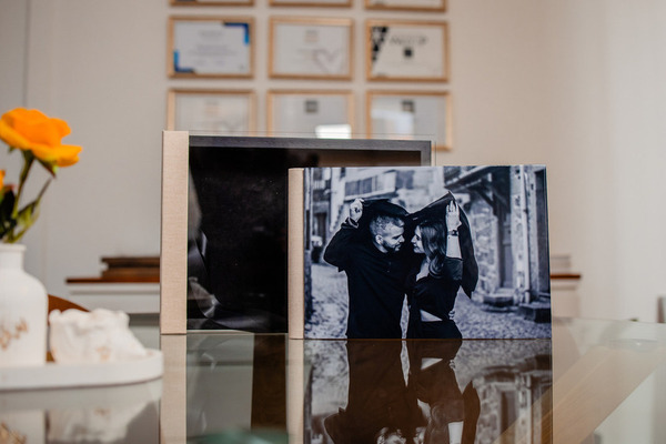 Conjunto de Livro de Honra fotográfico para casamento requintado e intemporal.