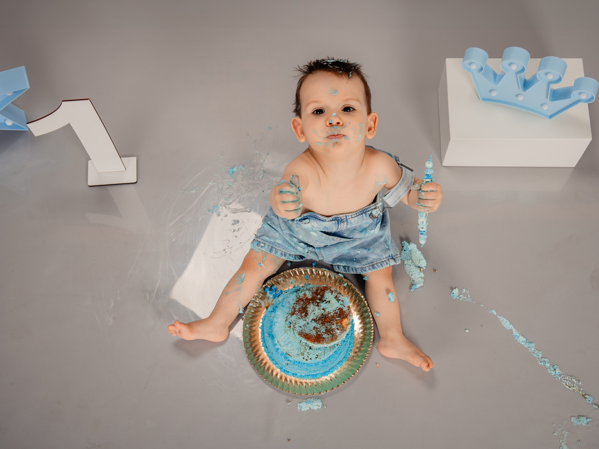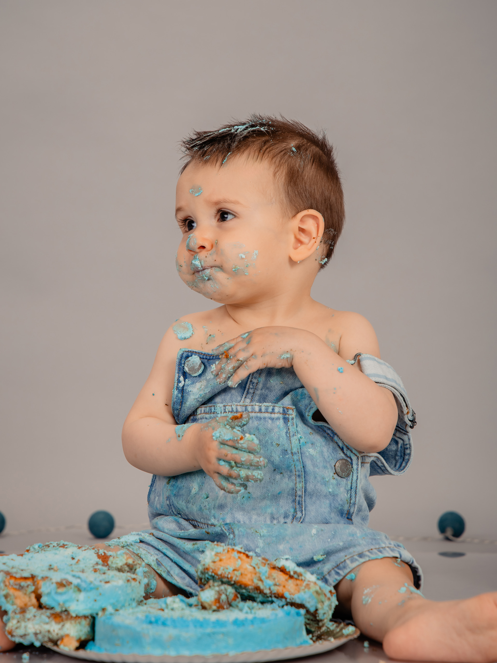 ⟡ Fase do Bolo - Smash-the-cake, onde o bebé vai naturalmente sujar-se e deliciar-se com o bolo